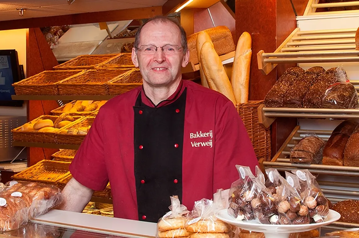 Marius Verweij was al zes jaar eigenaar geweest van een bakkerswinkel in Brielle toen hij in 1996 de zaak in Woerden overnam. Jaren daarvoor had hij hier zelf stage gelopen. Marius wisselt momenteel zijn ambacht af met het ondernemerschap en leidt met veel enthousiasme jonge brood- en banketbakkers op. In 1996 was hij op zoek naar accountantskantoor dat hem volledig kon ontzorgen: "Als eigenzinnige ondernemer zocht ik naar een kantoor waar ik de boekhouding mocht aanleveren op mijn eigen manier. Bij Stolp+KAB, destijds nog in Gouda, kon ik mijn ei uitstekend kwijt. Dit is inmiddels alweer twintig jaar geleden."